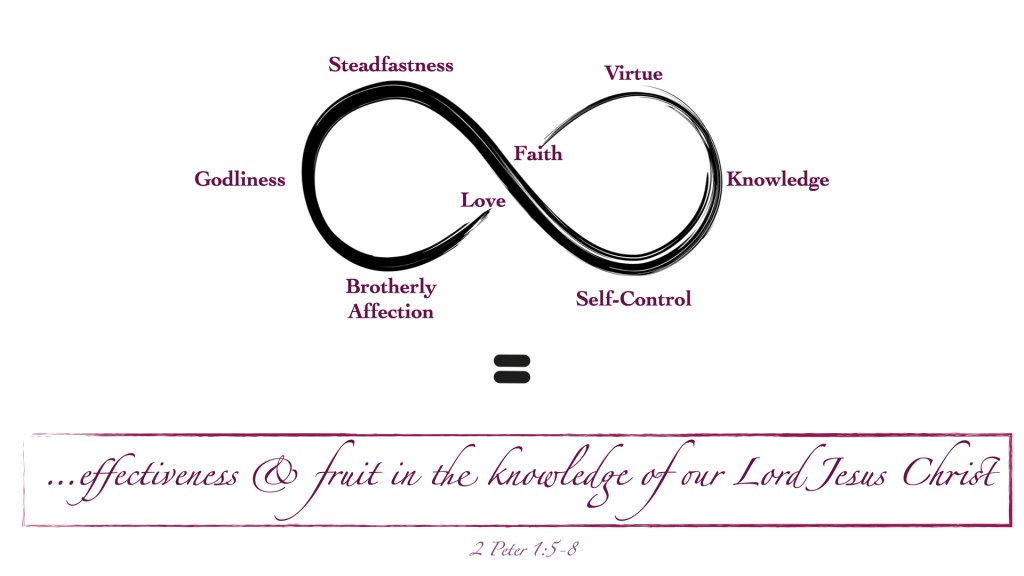 …make every effort to supplement your faith with virtue, and virtue with knowledge, and knowledge with self-control, and self-control with steadfastness, and steadfastness with godliness, and godliness with brotherly affection, and brotherly affection with love. For if these qualities are yours and are increasing, they keep you from being ineffective or unfruitful in the knowledge of our Lord Jesus Christ.